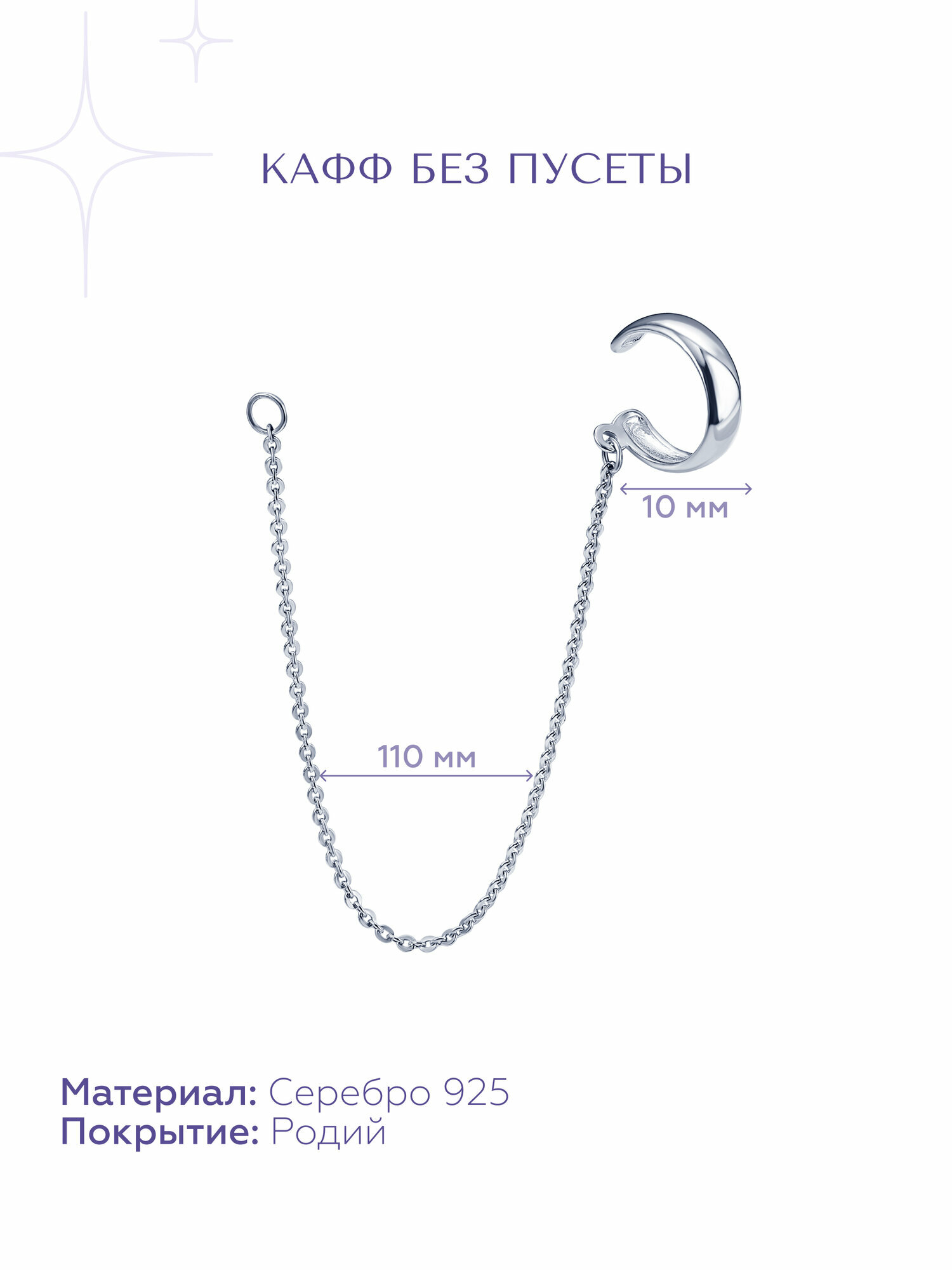 Серьга MIESTILO кафф на длинной цепочке серебро 925 без прокола информация: