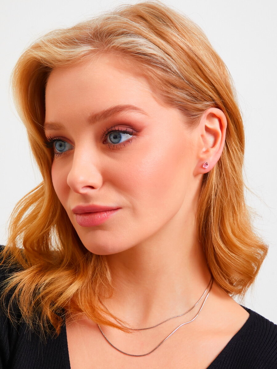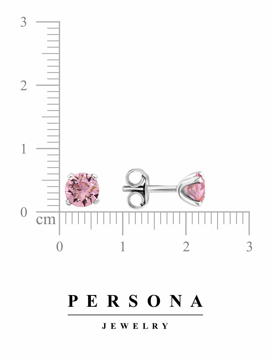 Серьги пусеты ПЕРСОНА, серебро, 925 проба, родирование, кристаллы Swarovski, размер 5 мм, длина 1.3 см, , розовый 1 790 ₽