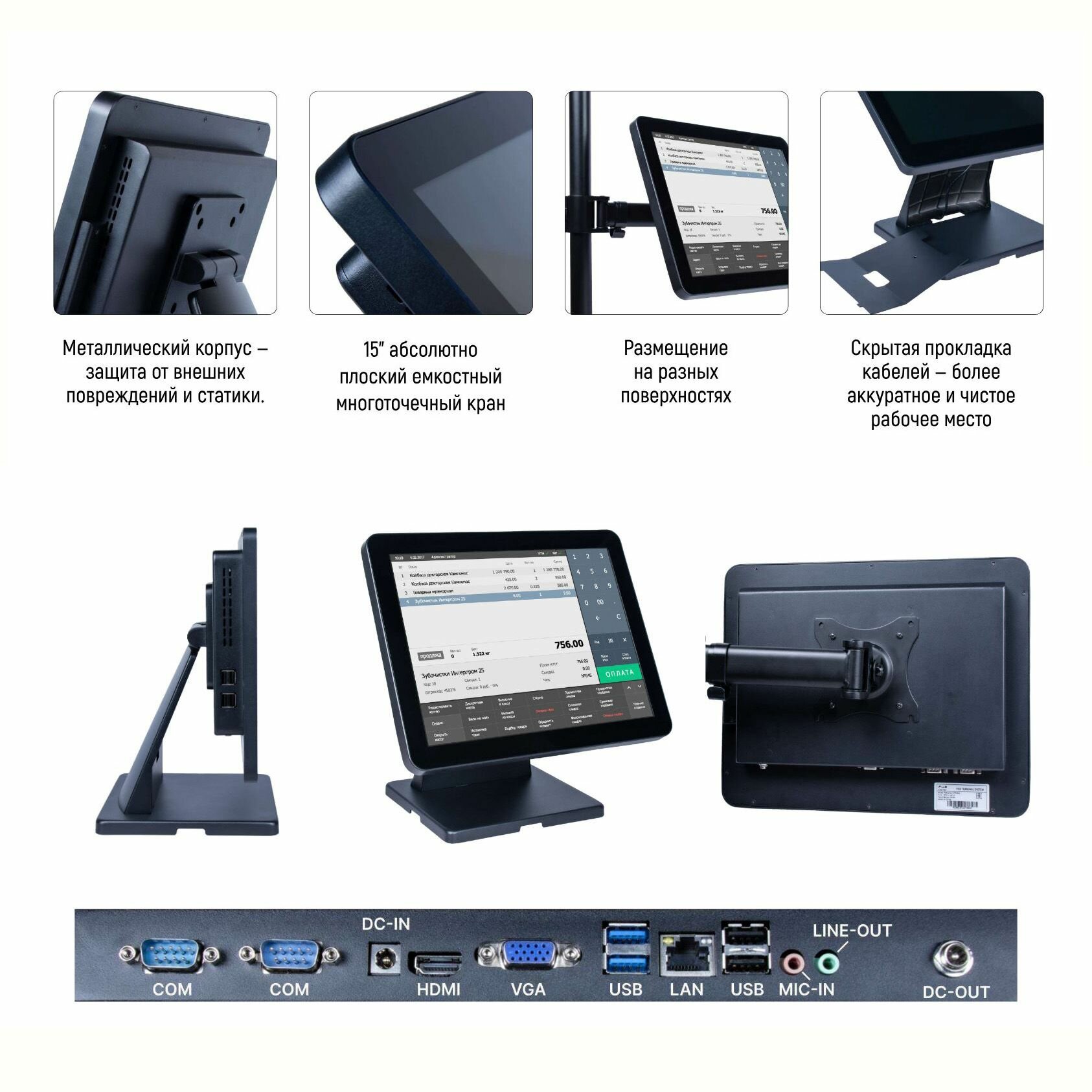 Сенсорный POS моноблок POSCenter Atlas (15", PCAP, J4125, DDR4 4Gb 2400MHz; M2 SATA 128GB, MSR, без ОС) информация: