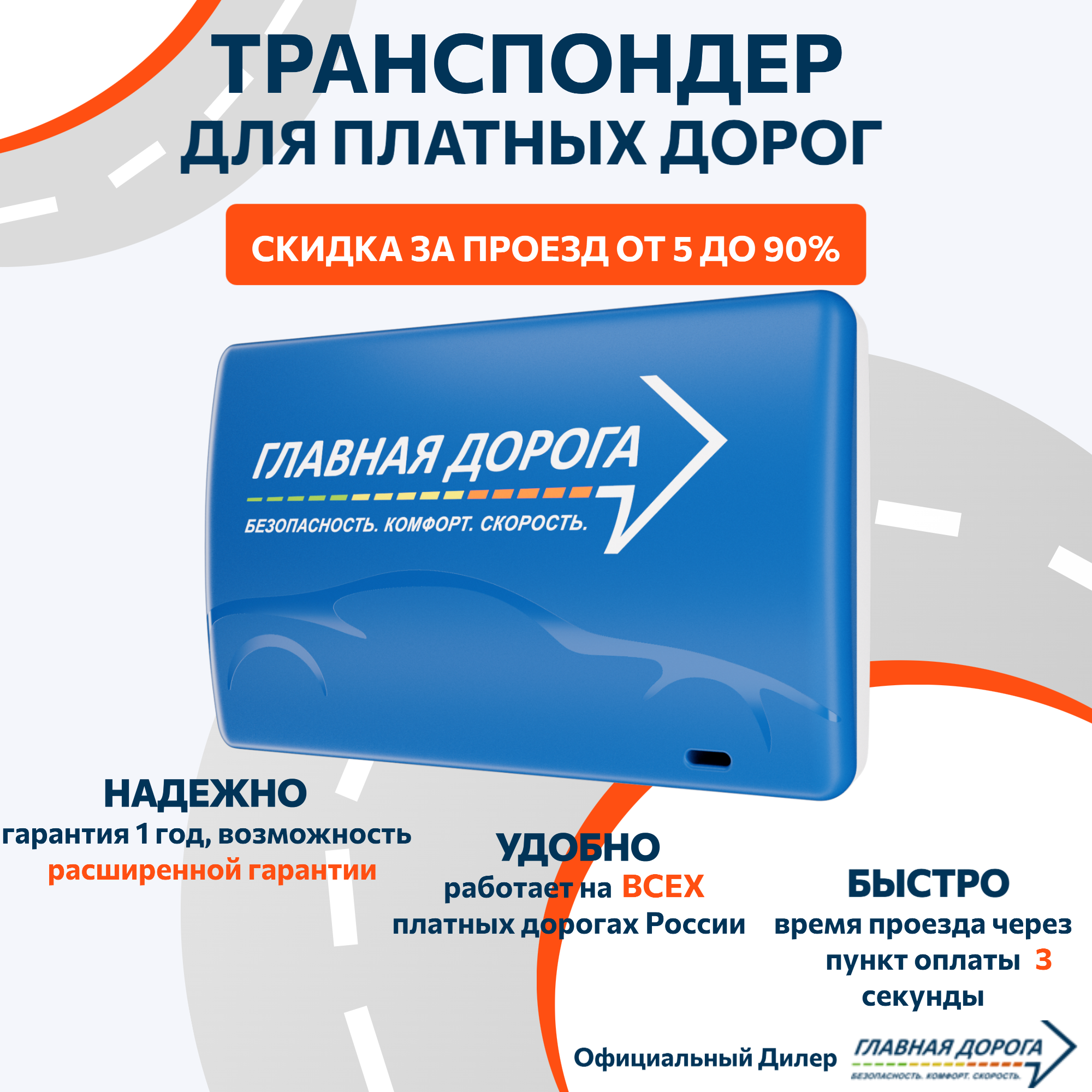| Тип транспондера для платных дорог | «Главная дорога» |