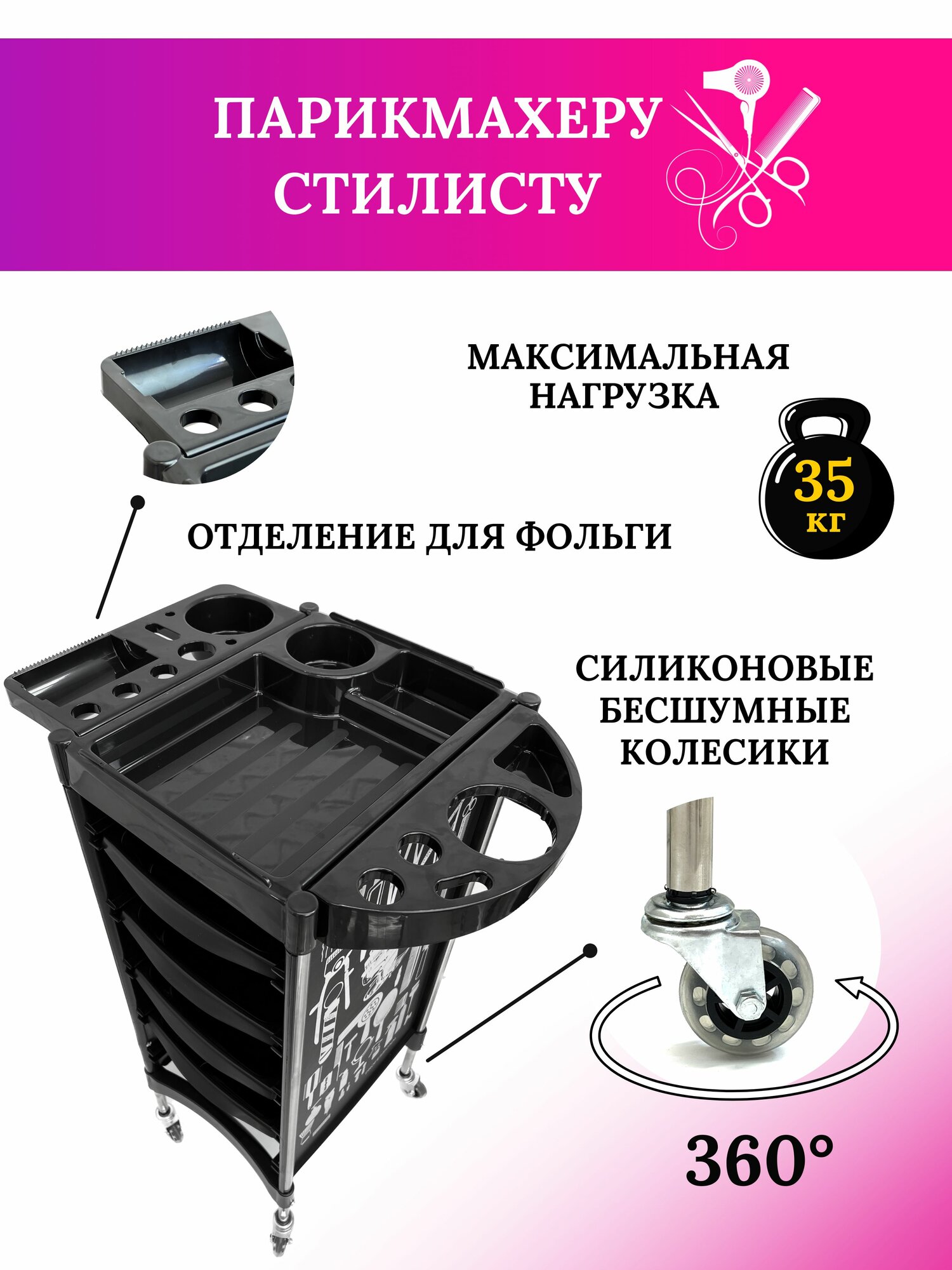 Kushetka174 / Тележка парикмахерская Блик / Тележка для парикмахера / Этажерка для салона красоты