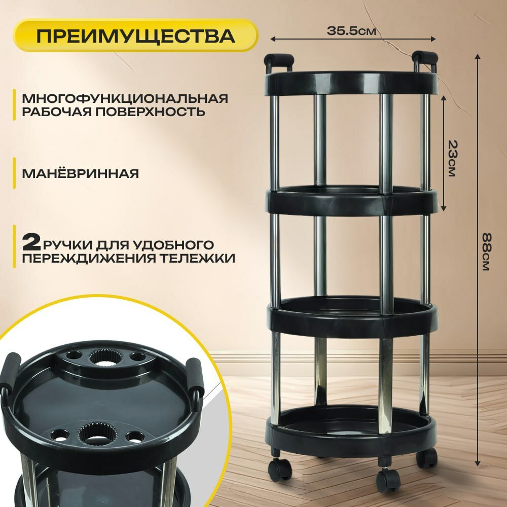 10 цен на Тележка парикмахерская черная на колесах /тележка для парикмахера /этажерка для салона красоты
