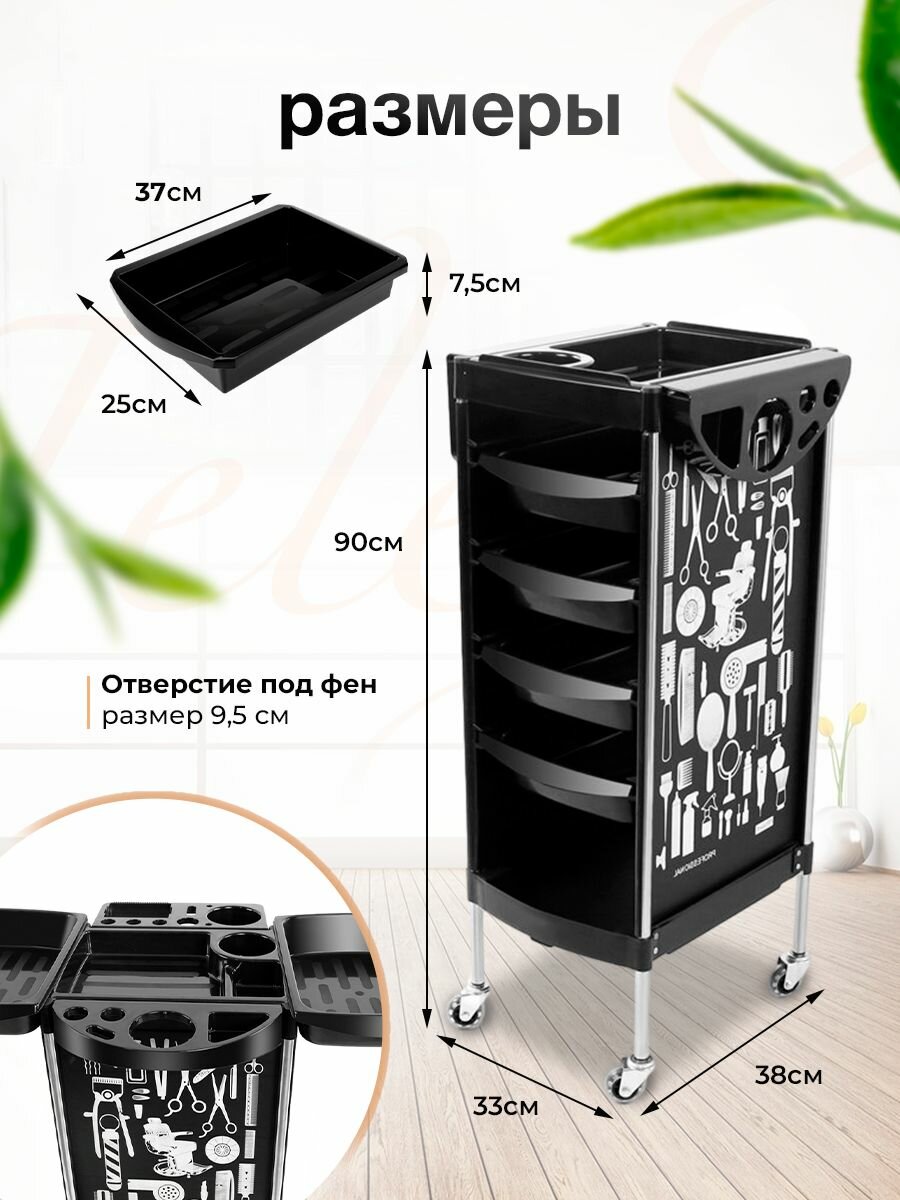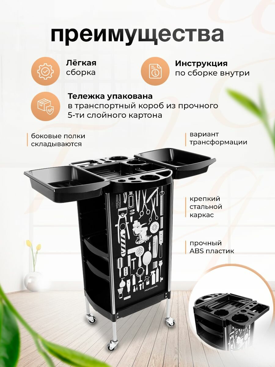 Тележка парикмахерская косметологическая на колесиках 4 ящика принт информация: