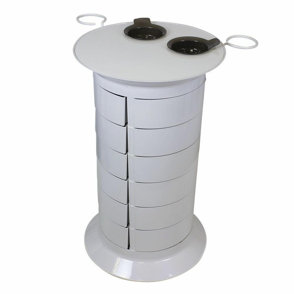 Парикмахерская тележка с 18 ящиками GiroCo Doble 49х49х83 см белая, круглая, пластиковая, выкатная на колесиках для салона красоты, парикмахера информация: