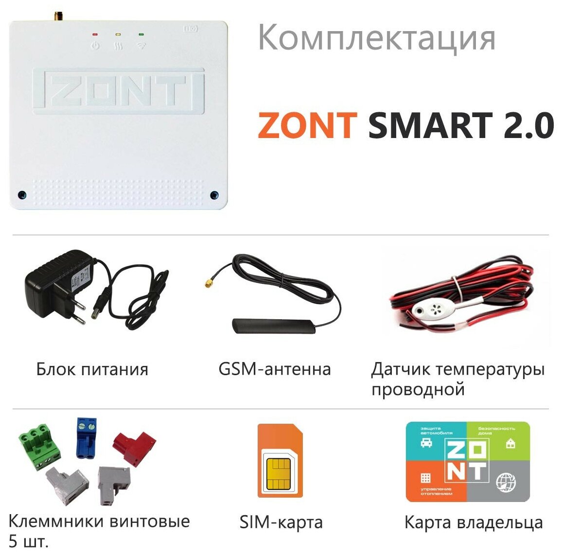 | Подробная комплектация | Модуль, GSM-антенна, сим-карта, карта владельца, проводной датчик, блок питания, клеммники, документация |