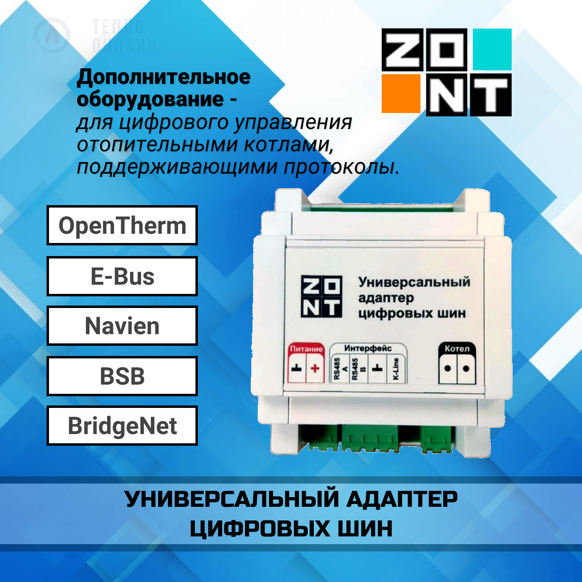 Отопительный контроллер ZONT SMART 2.0 + Универсальный адаптер цифровых шин (DIN) информация: