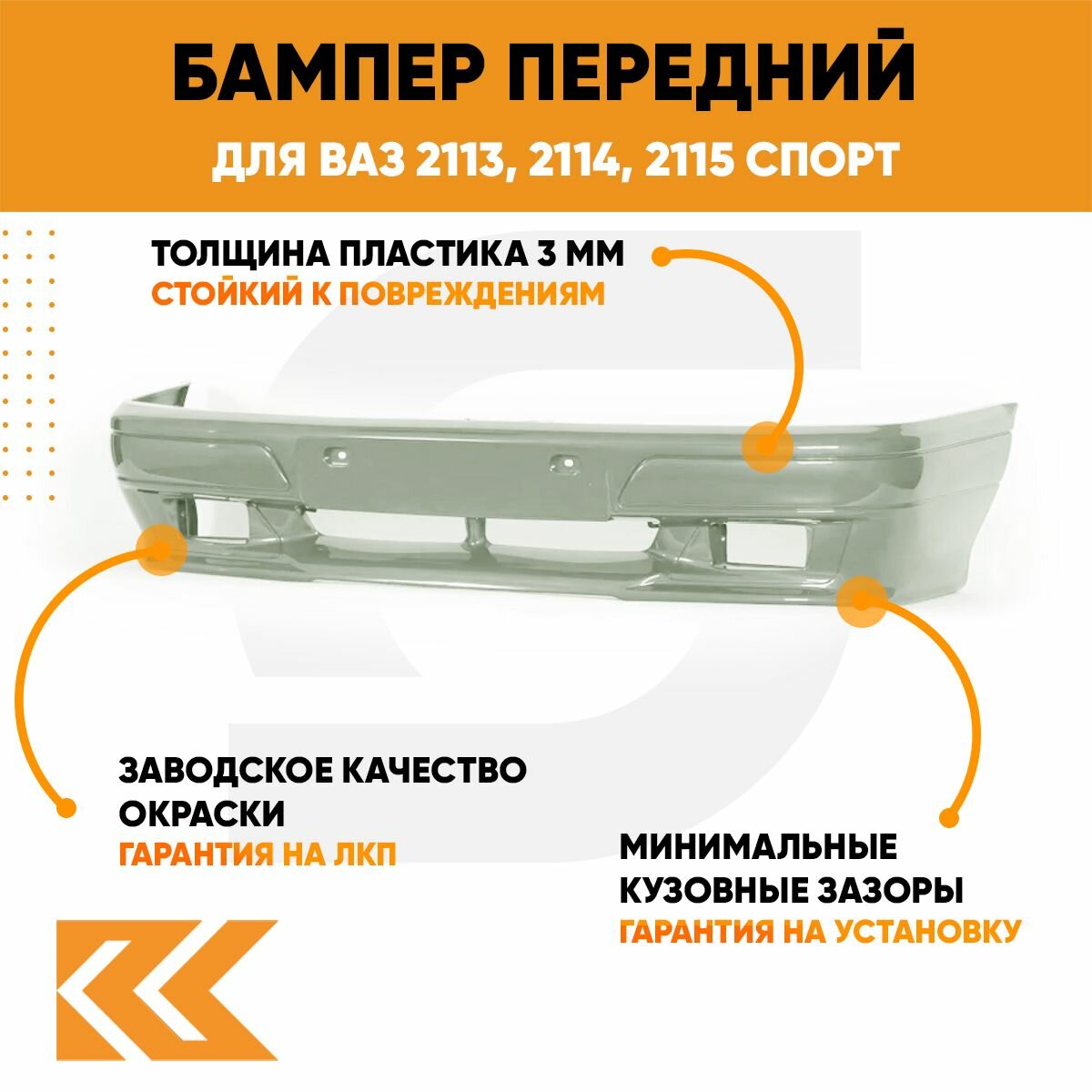 Бампер передний в цвет ВАЗ 2113, 2114, 2115 спорт 503 - Аккорд - Серый 7 500 ₽