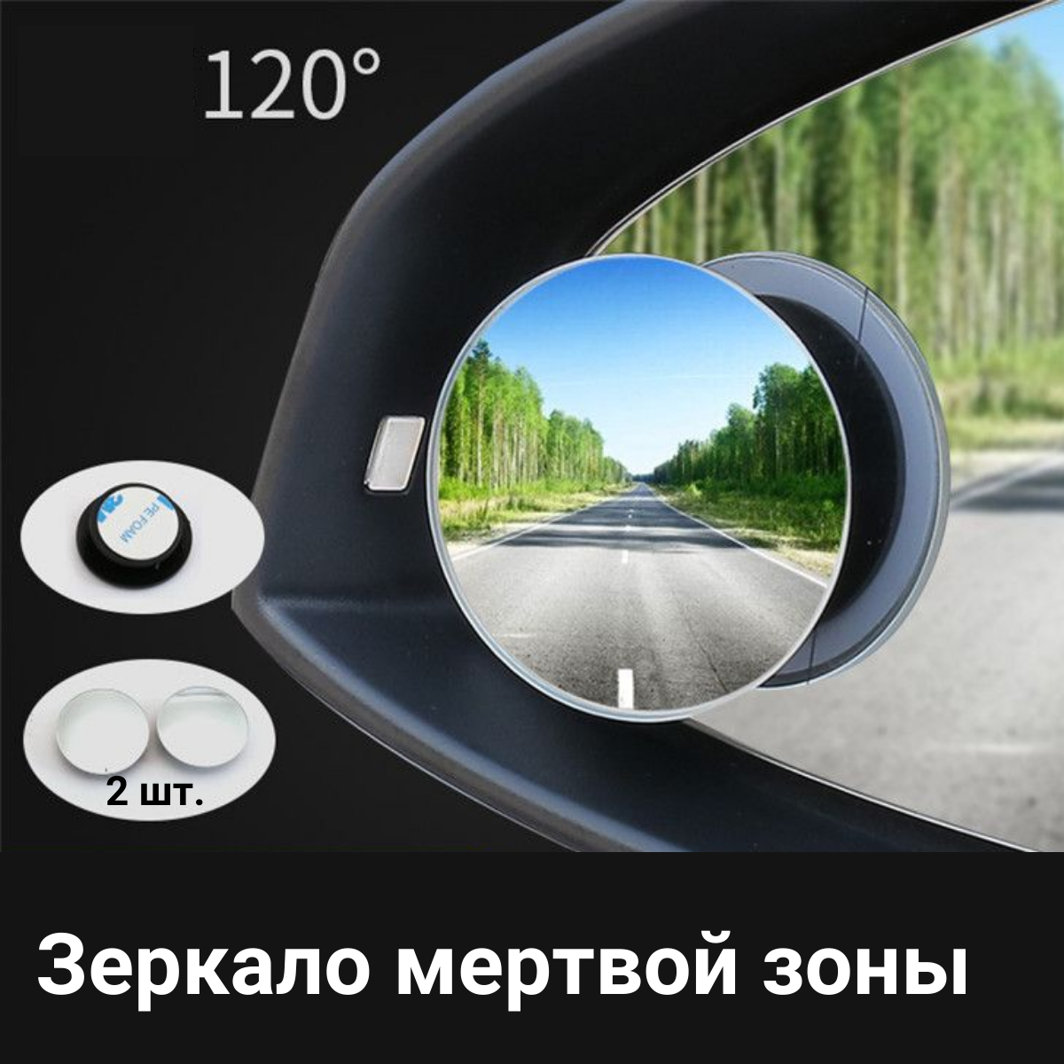 Зеркало мертвой зоны 2шт. Дополнительное зеркало. Боковое. Диаметр 5см. информация: