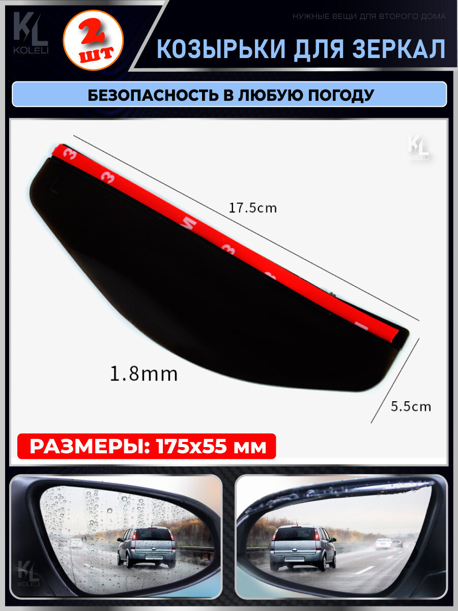 Отзывы на KoLeli / Защитные козырьки для зеркала заднего вида / антидождь / темные, 2 шт.