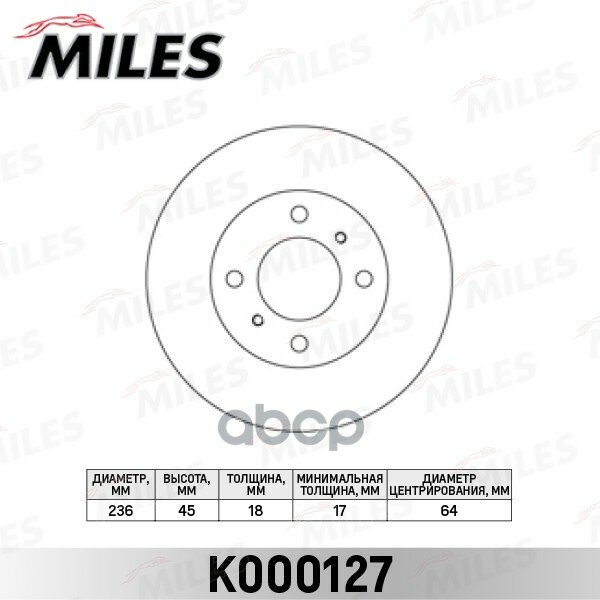 Диск тормозной передний MILES K000251 для а/м Chevrolet Lanos, Daewoo Nexia с дв. 1.5 SOHC, 236х20 мм. R13