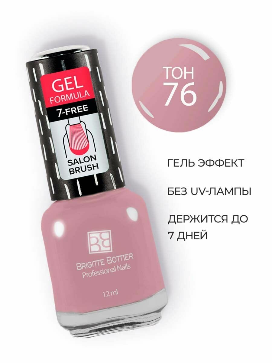 10 цен на Brigitte Bottier Лак для ногтей Gel Formula, 12 мл, тон 76 розовато-лилово-серый