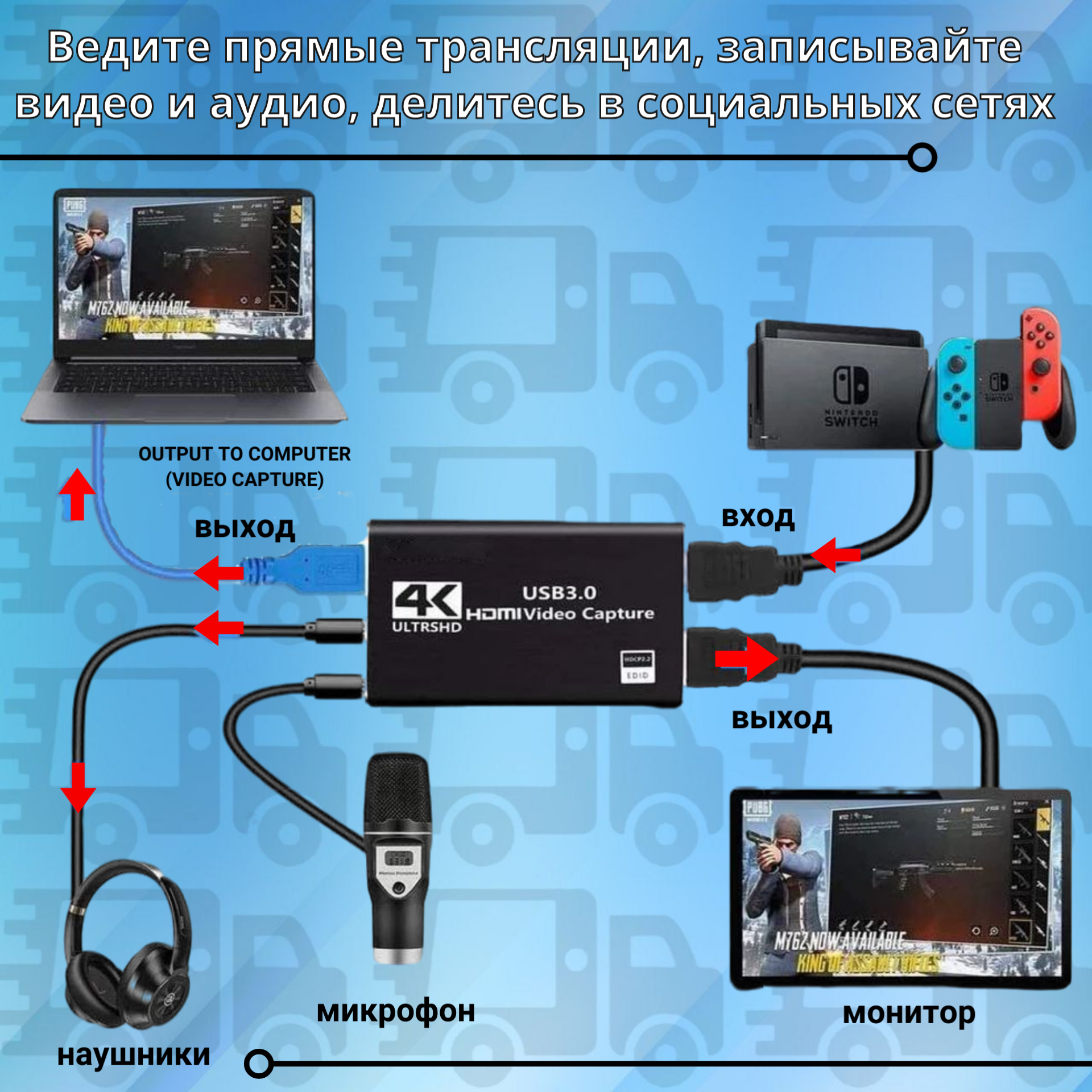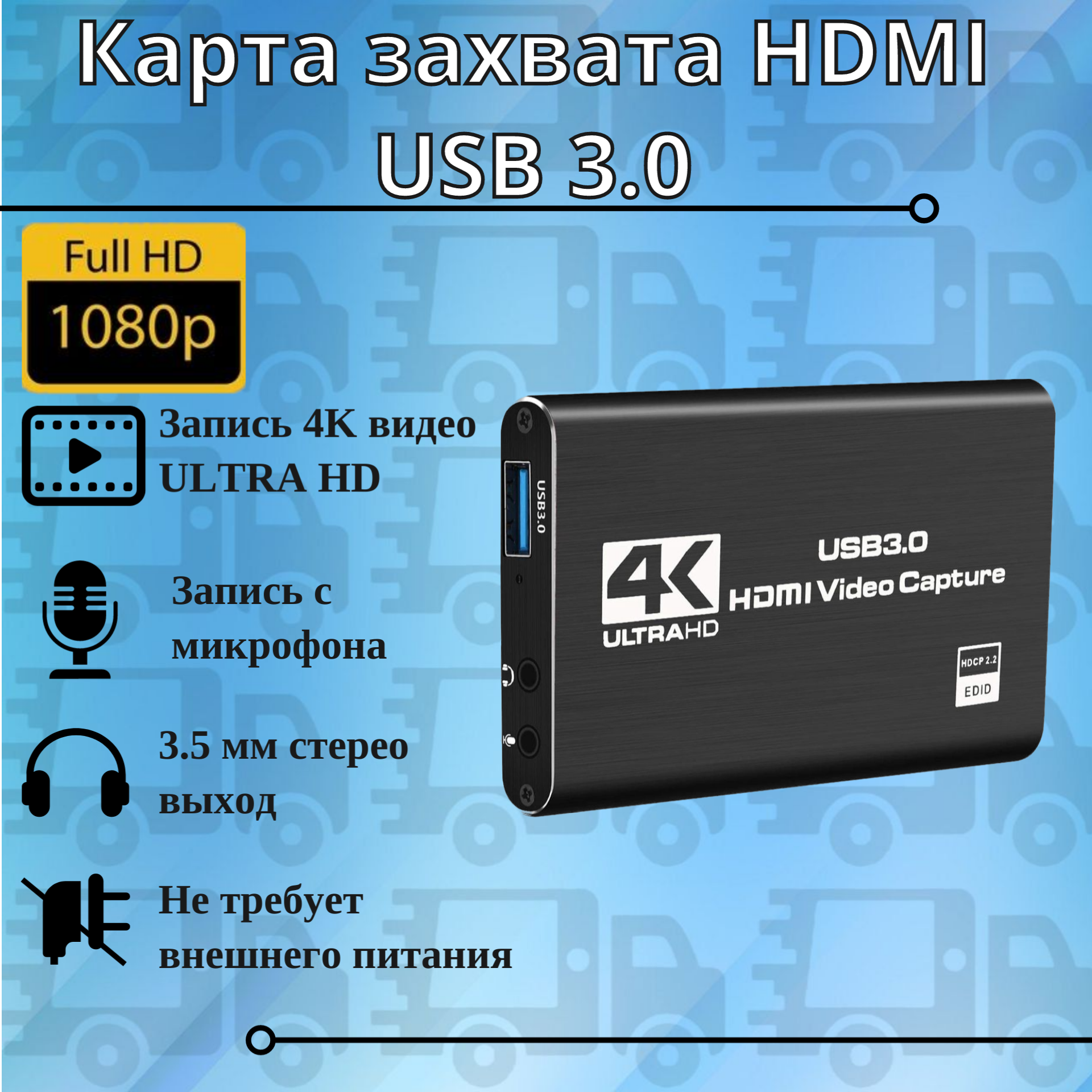 Карта видеозахвата HDMI USB 3.0 1080P 60 fps захват стриминг запись + подключение микрофона информация: