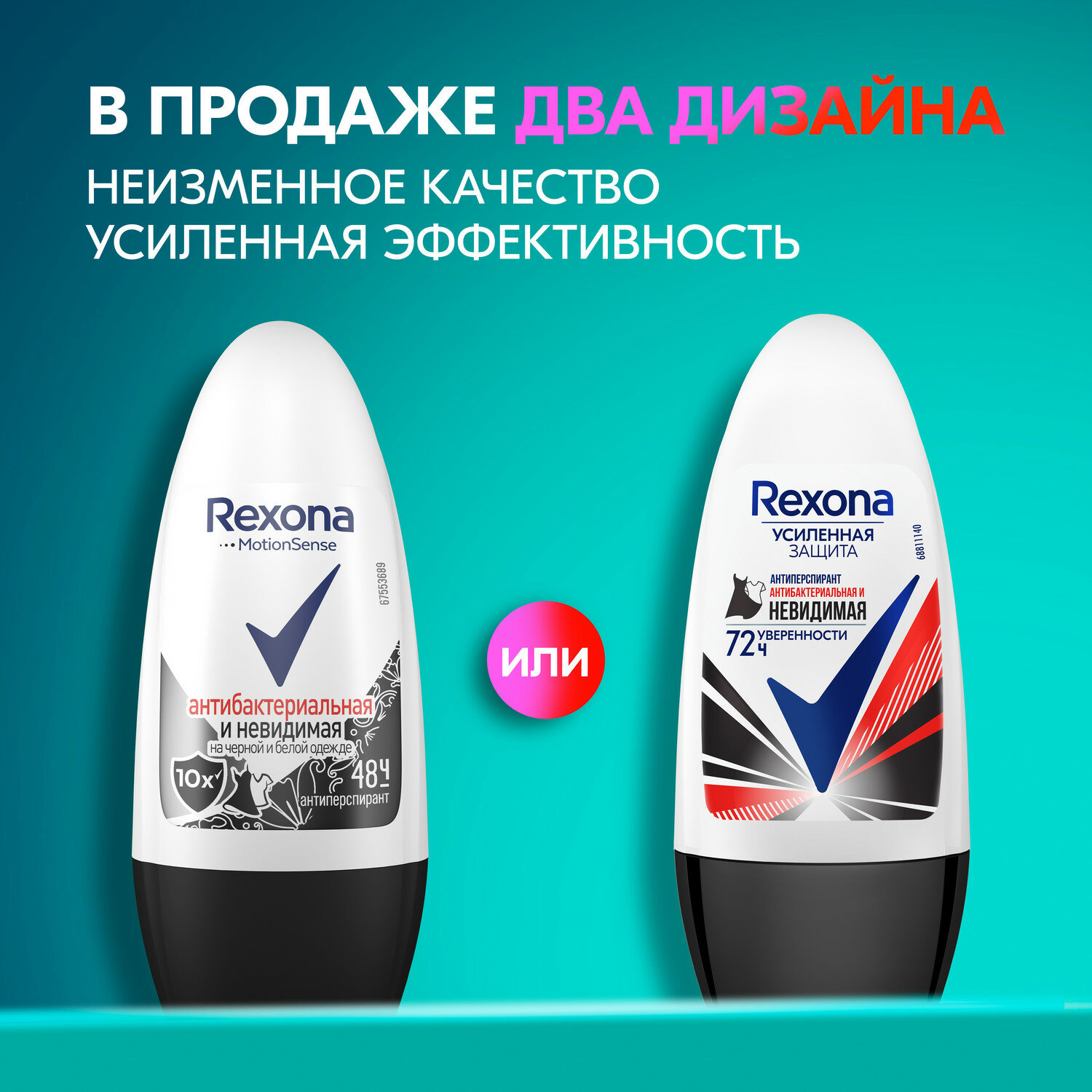 Дезодорант для тела REXONA 50мл roll Антибактериальный и Невидимый на черном и белом