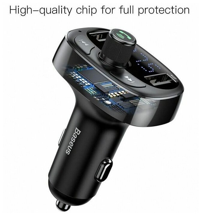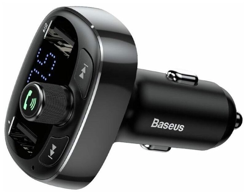 FM-трансмиттер с зарядкой, Baseus Wireless MP3 Car Charger T Typed S-16, Bluetooth 5.0, Черный