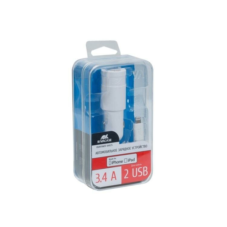 Автомобильное зарядное устройство RIVAPOWER VA4225 WD2 белое 3,4A / 2USB, с кабелем MFi Lightning информация: