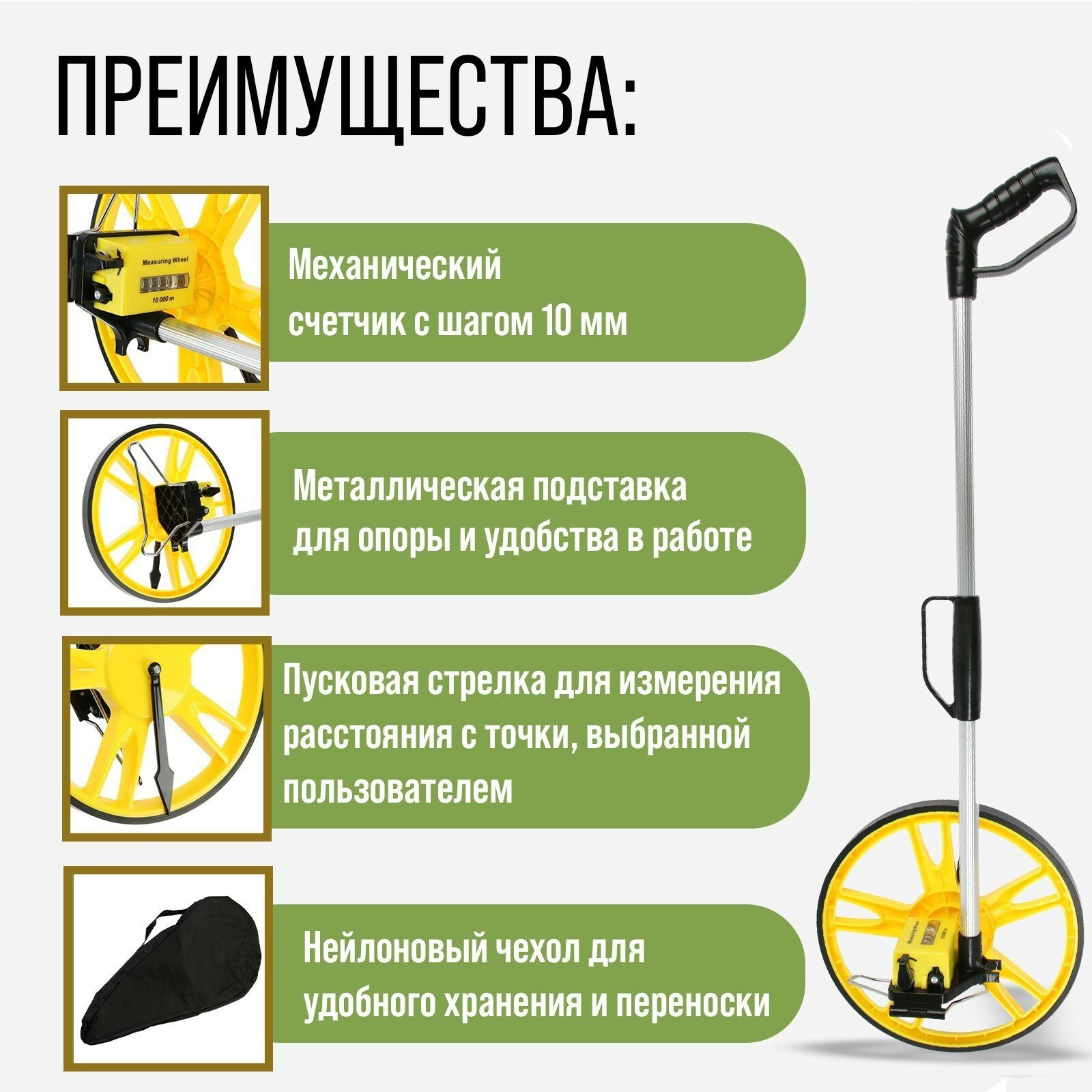 10 цен на Измерительное колесо, механическое, диаметр 318 мм, диапазон измерения 0-9999.9 м
