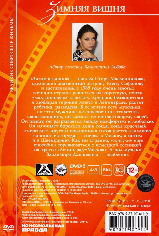 Великие Советские фильмы (DVD + книга). Зимняя вишня (DVD) информация: