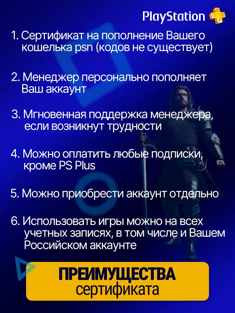 | Инструкция по активации | После покупки Вам придет код (1 или несколько) на почту. Инструкция по активации: 1. Зайдите в свой польский профиль в PSN; 2. Откройте раздел Redeem code; 3. Введите полученный код (если их несколько, то каждый код вводится отдельно); |
