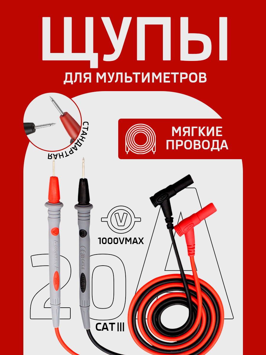 Щупы для мультиметра, 20 А, 1000 В, провода измерительные информация: