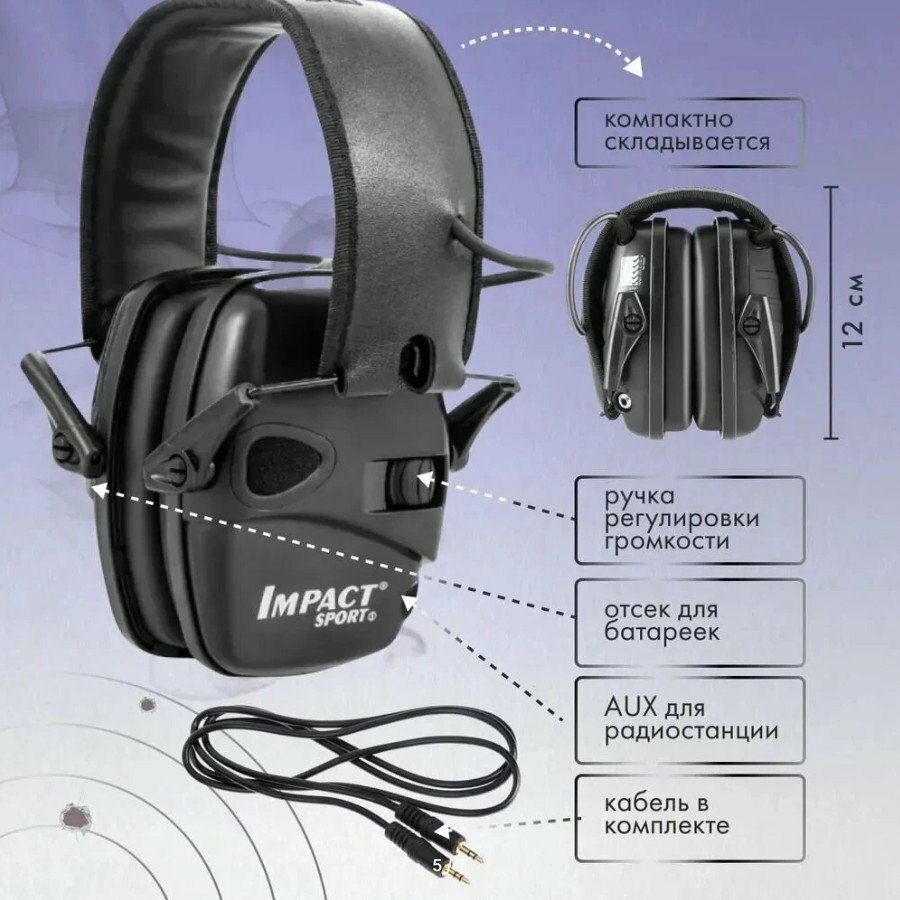 Наушники активные для стрельбы Impact Sport, тактические, +Чехол в подарок ( цвет хаки), под шлем Mr "Howard"