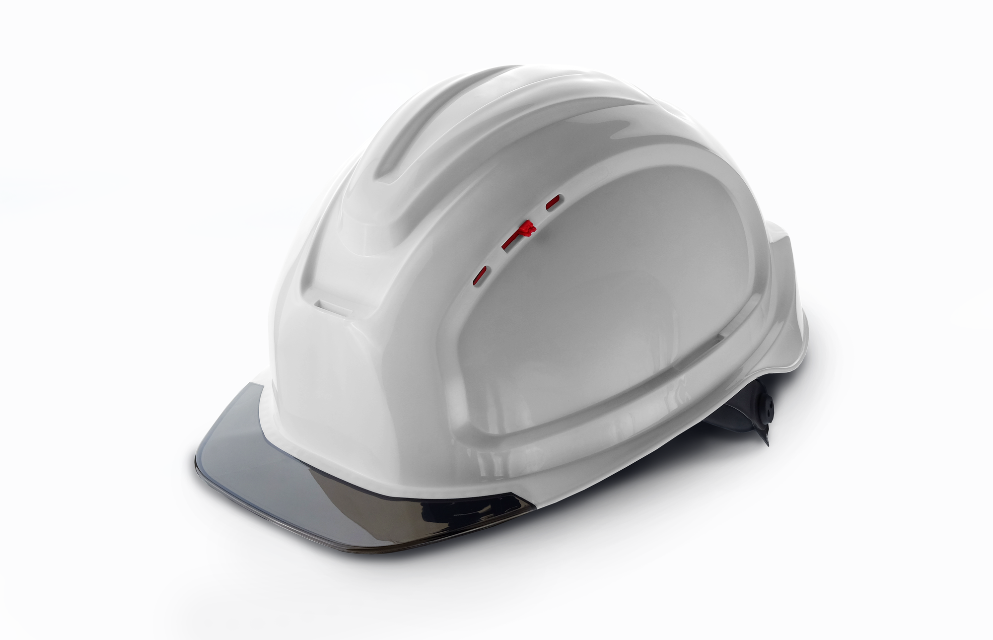 Каска РОСОМЗ СОМЗ-80 Абсолют Престиж RAPID белая, прозрачный серый козырек, инновационная информация: