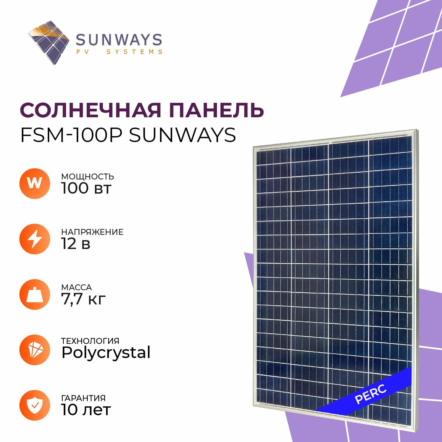 10 цен на Солнечная панель Sunways FSM 100P, солнечная батарея 100Вт для дома, для дачи, 12В, 1шт.
