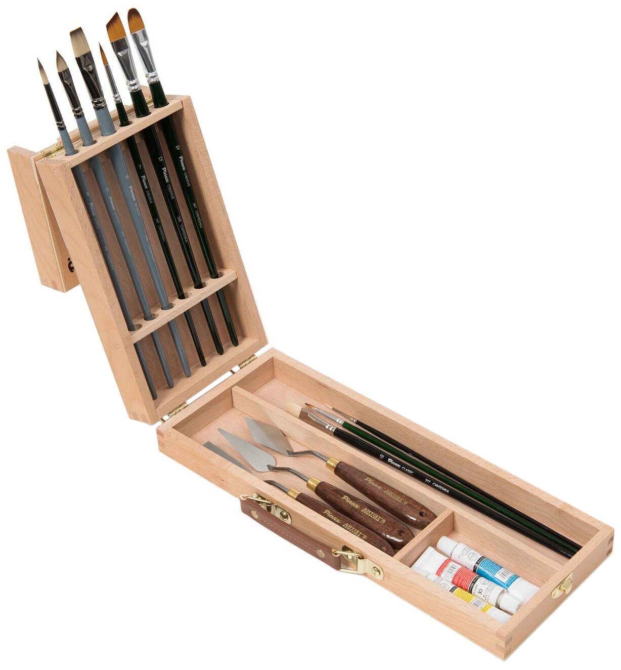 Ящик художника SB-2 с ячейками и пеналом для кистей и красок, 3-х секционный, бук информация: