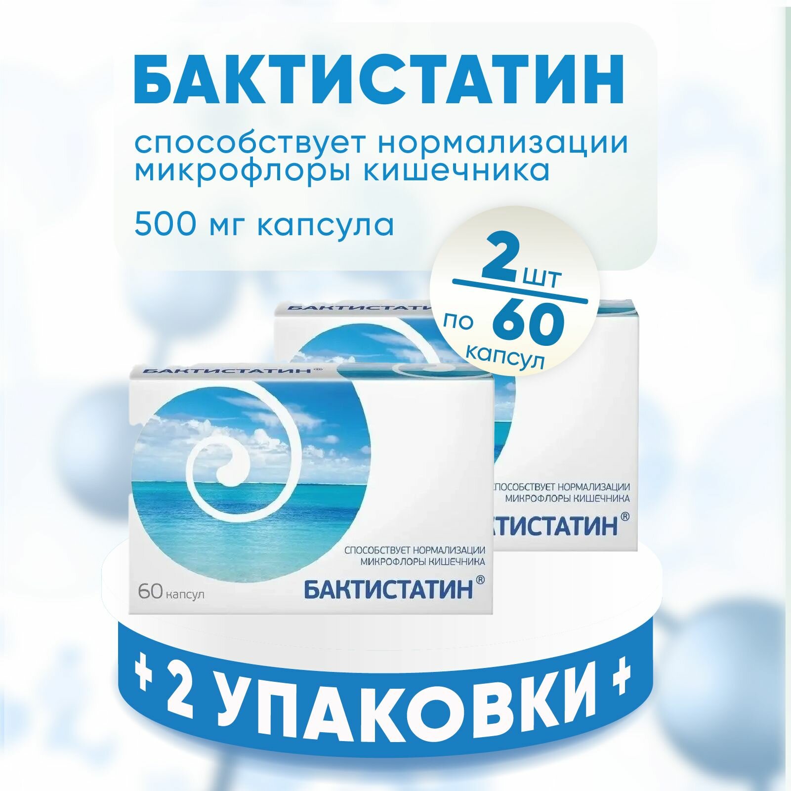 Бактистатин капсулы 500 мг, 2 упаковки по 60 шт, комплект из 2х упаковок информация: