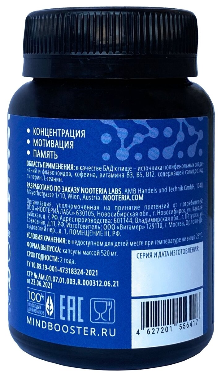 Ноотропы MindBooster от Nooteria Labs 40 капс. (Mind Booster) информация: