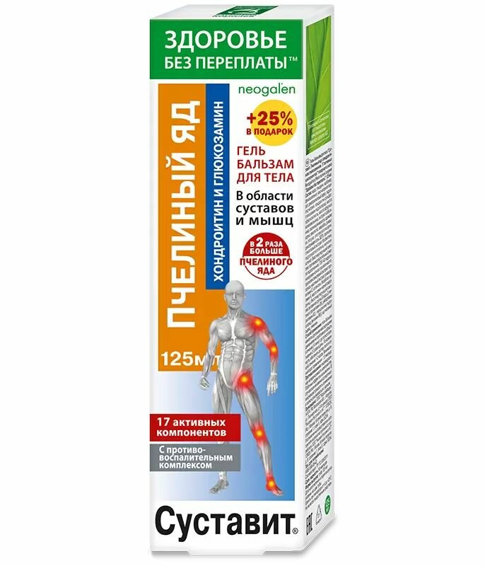 Суставит Пчелиный яд (хондроитин/глюкозамин), гель-бальзам для тела, 125 мл информация: