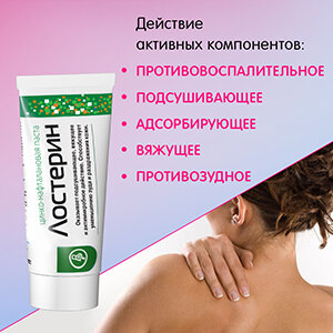 | Особые указания | Цинко-нафталановая паста «Лостерин» может использоваться как самостоятельное средство ухода за кожей, а также в комбинации с наружными лекарственными препаратами (глюкокортикостероиды, ингибиторы кальци- неврина, антибиотики и т.д.). Для получения стойкого результата при ряде патологических процессов необходимо курсовое и систематическое применение. |