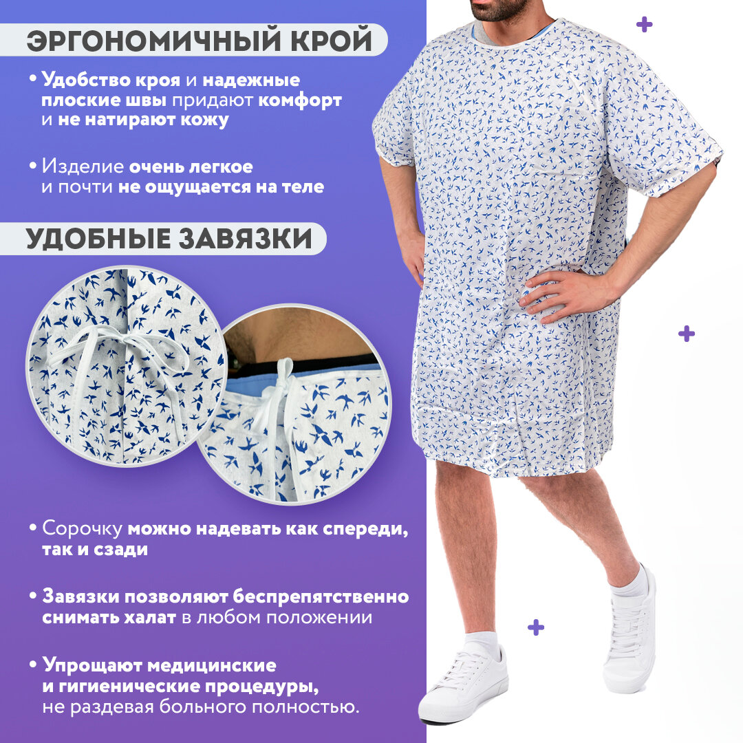 Отзывы на Больничный халат для пациентов 3шт XS. Адаптивная одежда для лежачих больных послеоперационная, ночная сорочка мужская, женская хлопок, набор в роддом