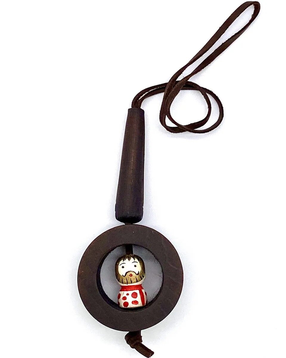 10 цен на Кезер Аксессуар для автомобиля "Дорожный оберег "Катунчик" мужской", диам. круга - 4 см. (кедр, керамика, кожа, ручная работа)