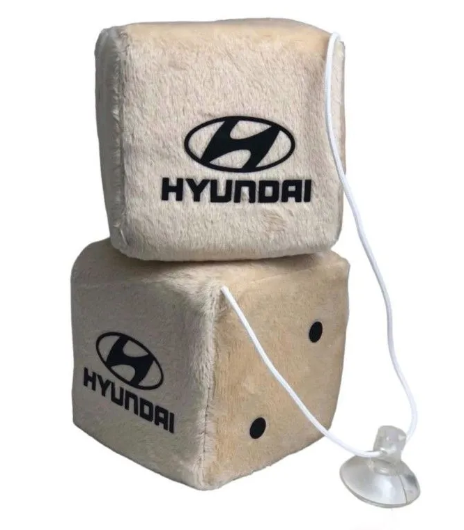 Игрушка плюшевая на присоске Кубики-кости в салон автомобиля на стекло HYUNDAY, хендай, подарок черные 8 см на 8 см 670 ₽