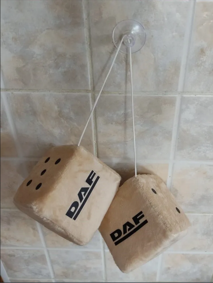 Игрушка плюшевая на присоске Кубики-кости в салон автомобиля на стекло DAF, ДАФ, подарок бежевые 8 см на 8 см информация: