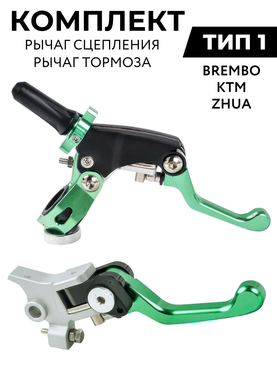 Комплект рычагов сцепления и тормоза CNC 360 ТИП 1, неломайки зеленые для эндуро и кроссовых мотоциклов информация: