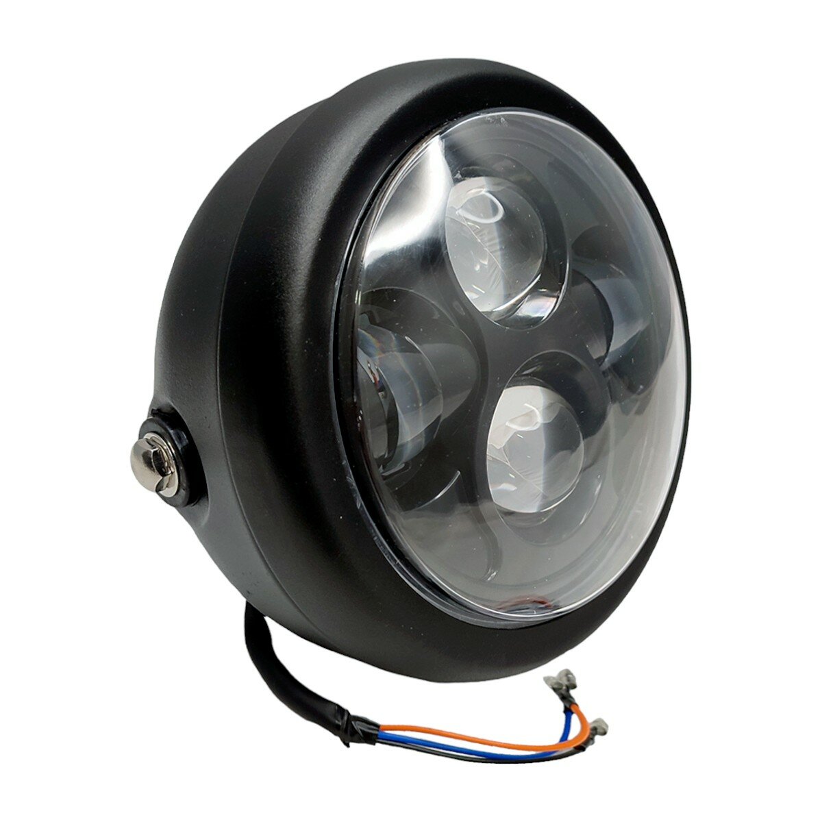 Головная фара LED светодиодная 5.75" дюйма на мотоцикл мопед мототехнику для мотоциклиста, черная матовая информация: