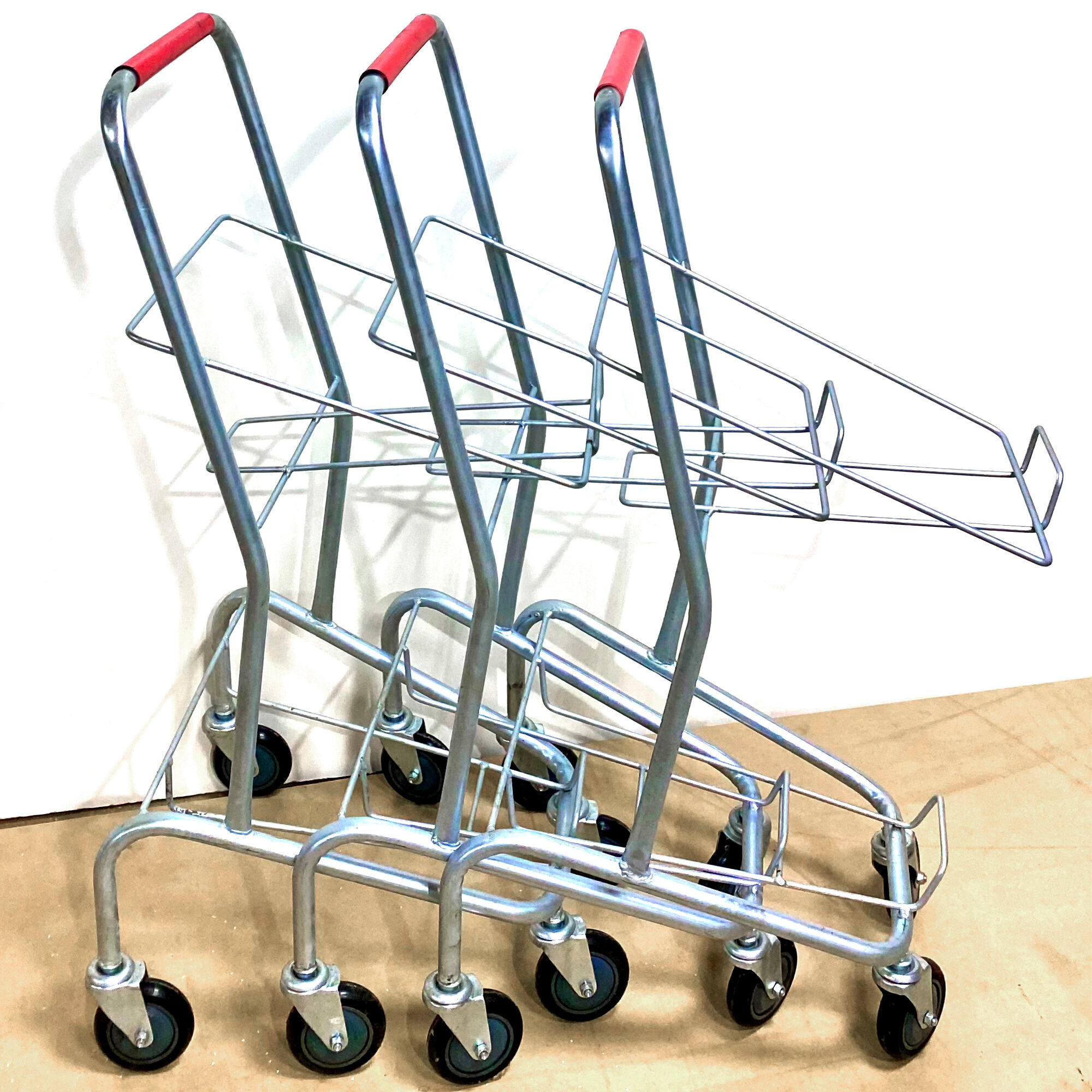 Тележка-подставка для двух покупательских корзин на колесах, серебристый/красный, 3 шт информация: