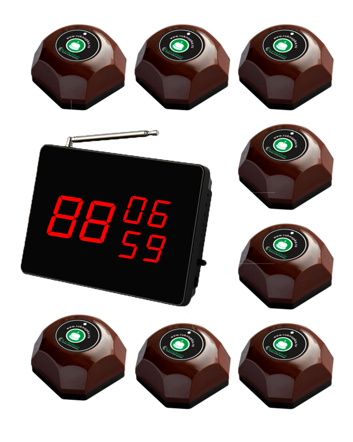 Комплект вызова официанта для ресторана: Часы пейджер "эконом" - 1 шт. и кнопка Смайл "Счет, Вызов, Меню, Отмена" - 10 шт.