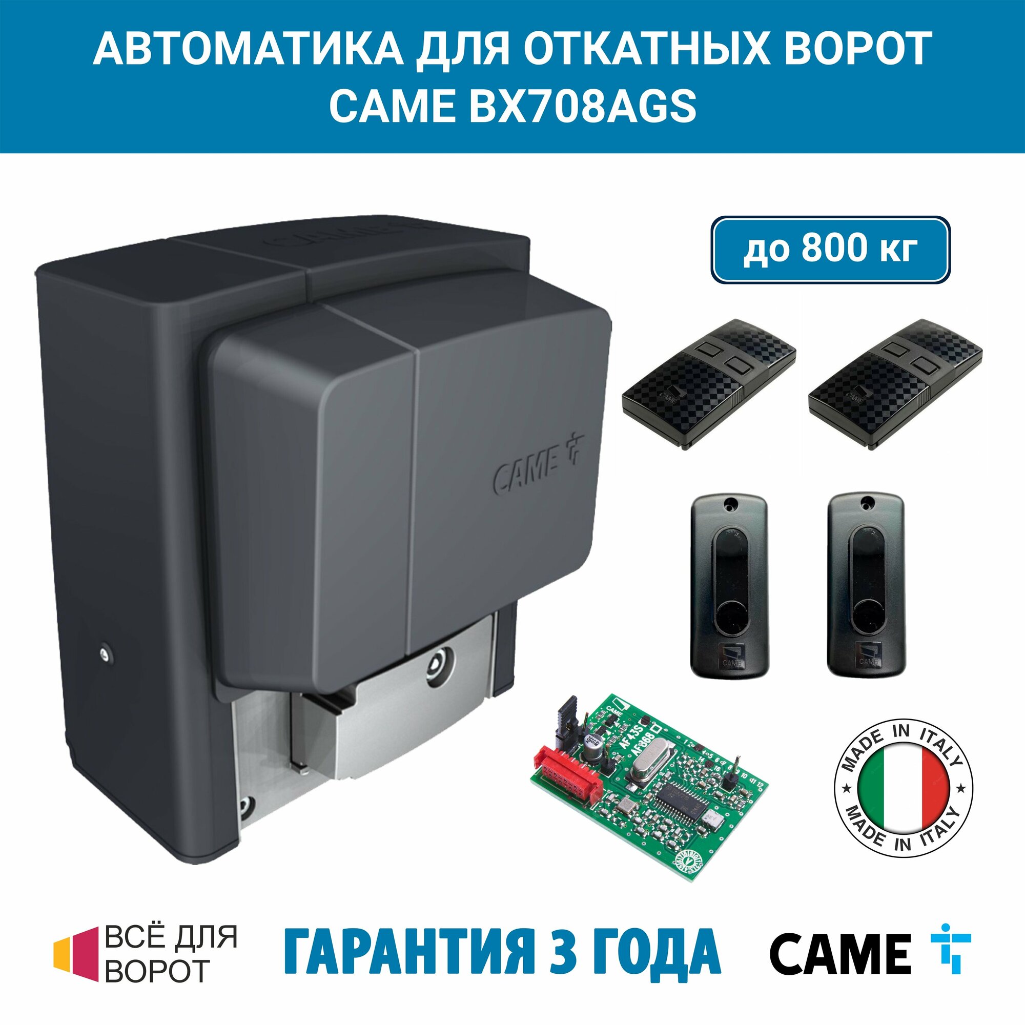 10 цен на Автоматика для откатных ворот CAME BX708AGS COMBO "CLASSICO" на основе привода BX708 (встроенный блок управления ZBX7N, радиоуправление, фотоэлементы)