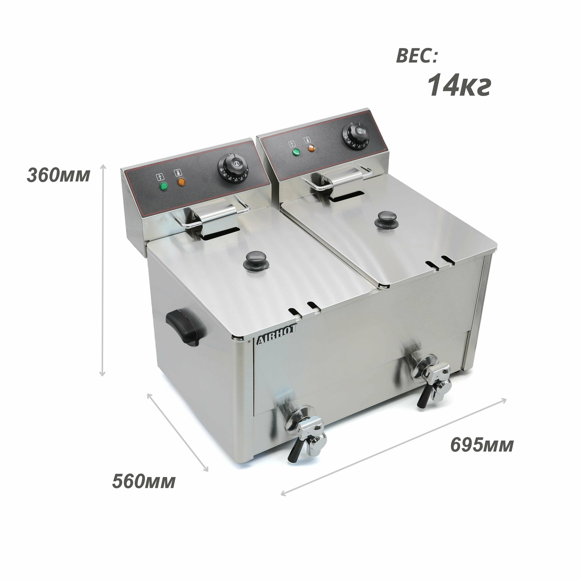 10 цен на Фритюрница AIRHOT EF16+16, объем 16л+16л, фритюрница профессиональная для кафе, ресторана, электрофритюрница, 10кВт