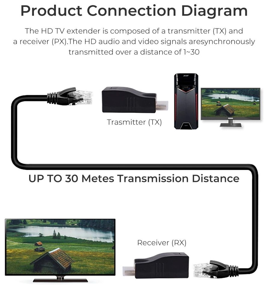 10 цен на Пассивный HDMI-удлинитель по витой паре CAT-5e/6 до 30м
