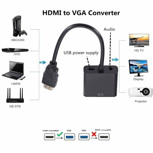 10 цен на Видеоконвертер вход HDMI - выход VGA + Audio L/R с усилителем Premier 5-983A