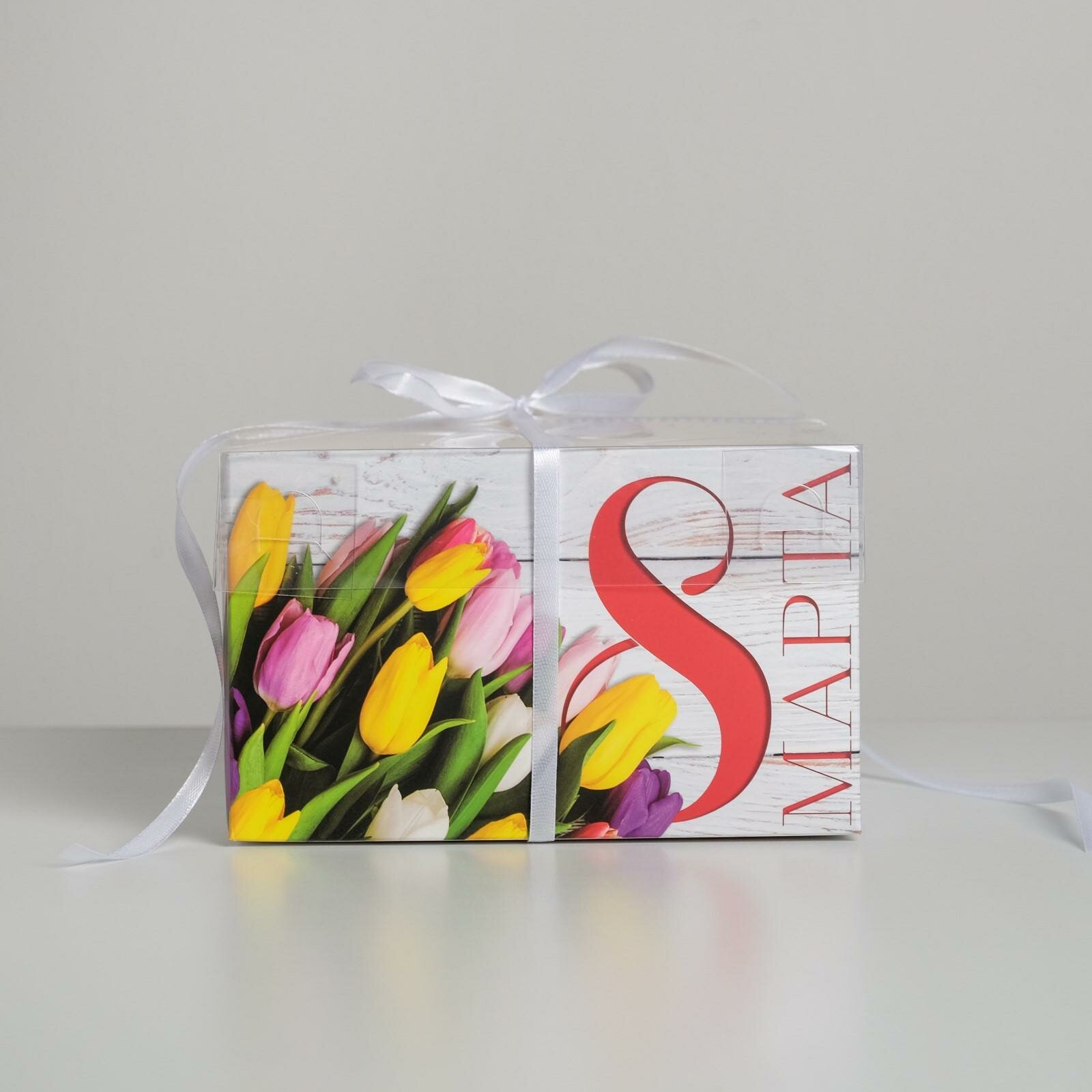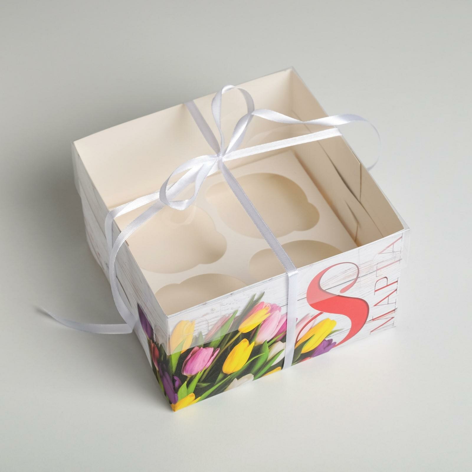 Коробка на 4 капкейка «8 Марта», 16 × 16 × 10 см(5 шт.)