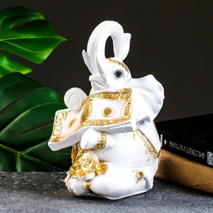 Копилка "Слон с деньгой" бело-золотой, 15х13х26см (комплект из 3 шт) информация: