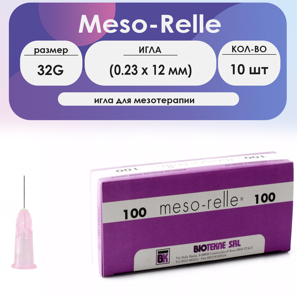 10 цен на Игла для мезотерапии Meso-Relle 32G (0,23 х 12 мм) - 10шт комплект