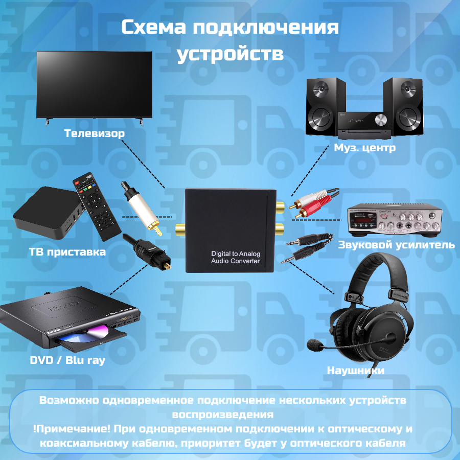 Цифро-аналоговый аудио конвертер оптика SPDIF Toslink Coaxial Digital RCA тюльпаны AUX 3.5 Jack TV dvd телевизор Ps5 PS4 PS3 XBOX информация: