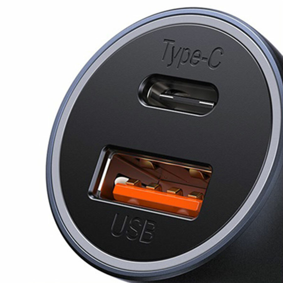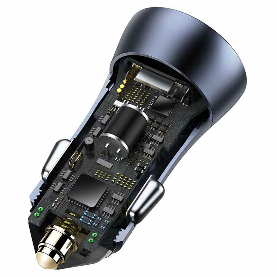 10 цен на Автомобильное зарядное устройство BASEUS Golden Contactor Pro Dual, 1xUSB + 1xUSB-C с Кабелем Type-C - Lightning, 3A, 40W, темно-серый
