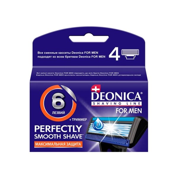 10 цен на Сменные кассеты д/бритья DEONICA 6 лезвий FOR MEN 4 шт.