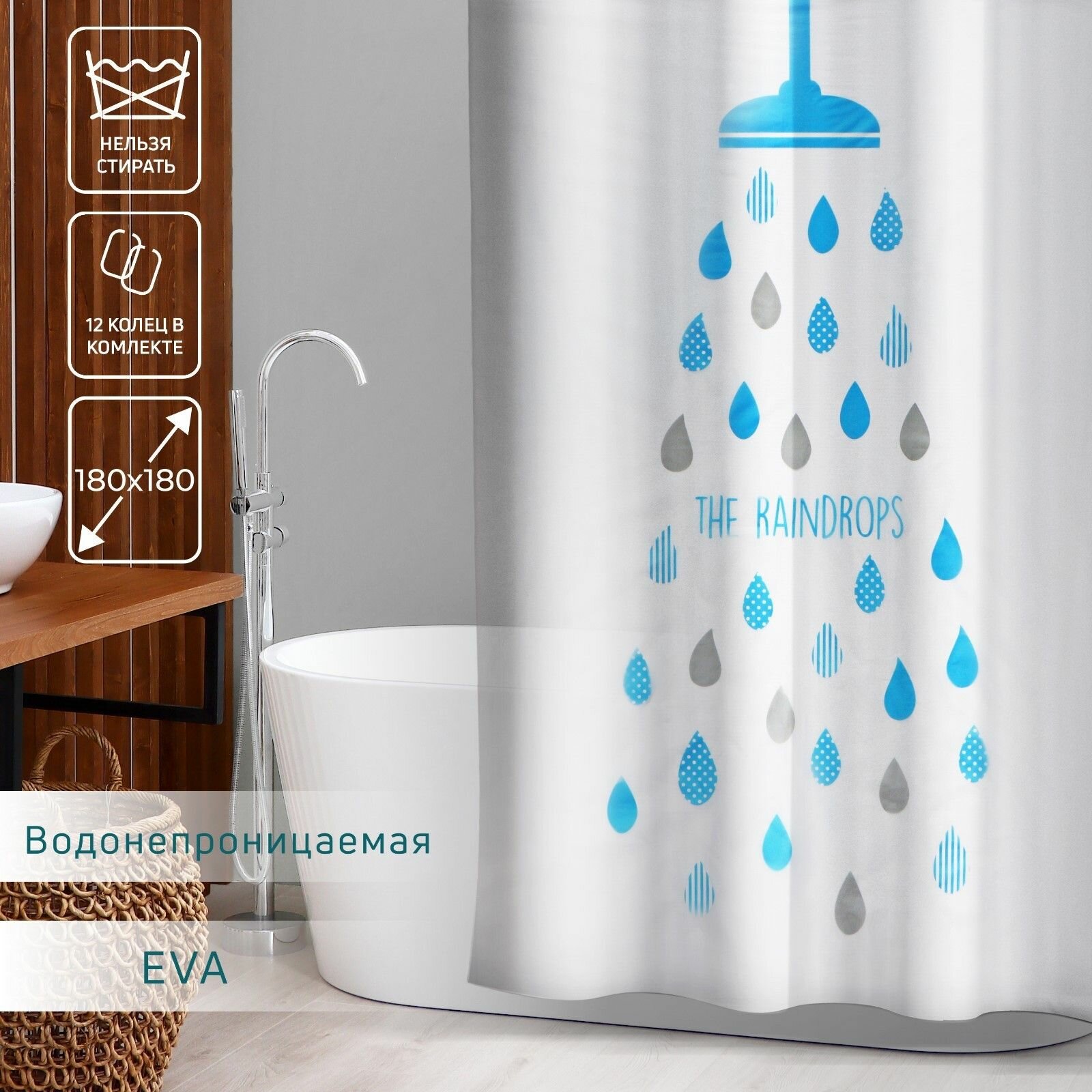 Штора для ванны «Капли», 180×180 см, EVA 998 ₽